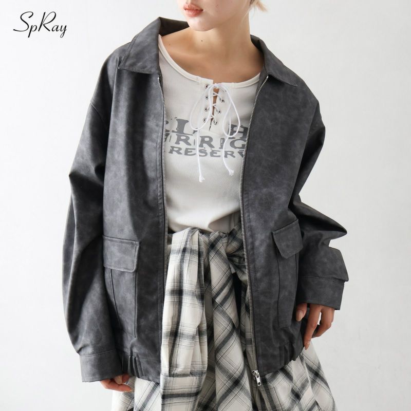 【SpRay フェイクレザーZipブルゾン】