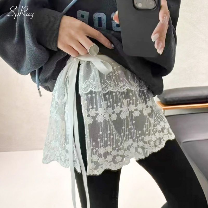 繊細な花柄の刺繍レースの透かし柄が可愛い、チュールレースのラップスカート♪
