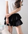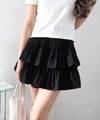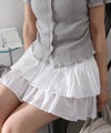 ふんわり広がるティアードフリルがたまらない、甘めミニスカート。