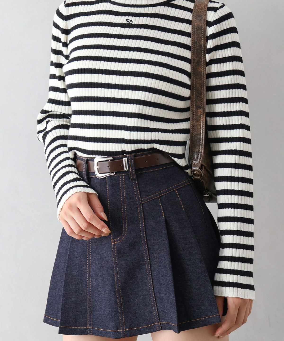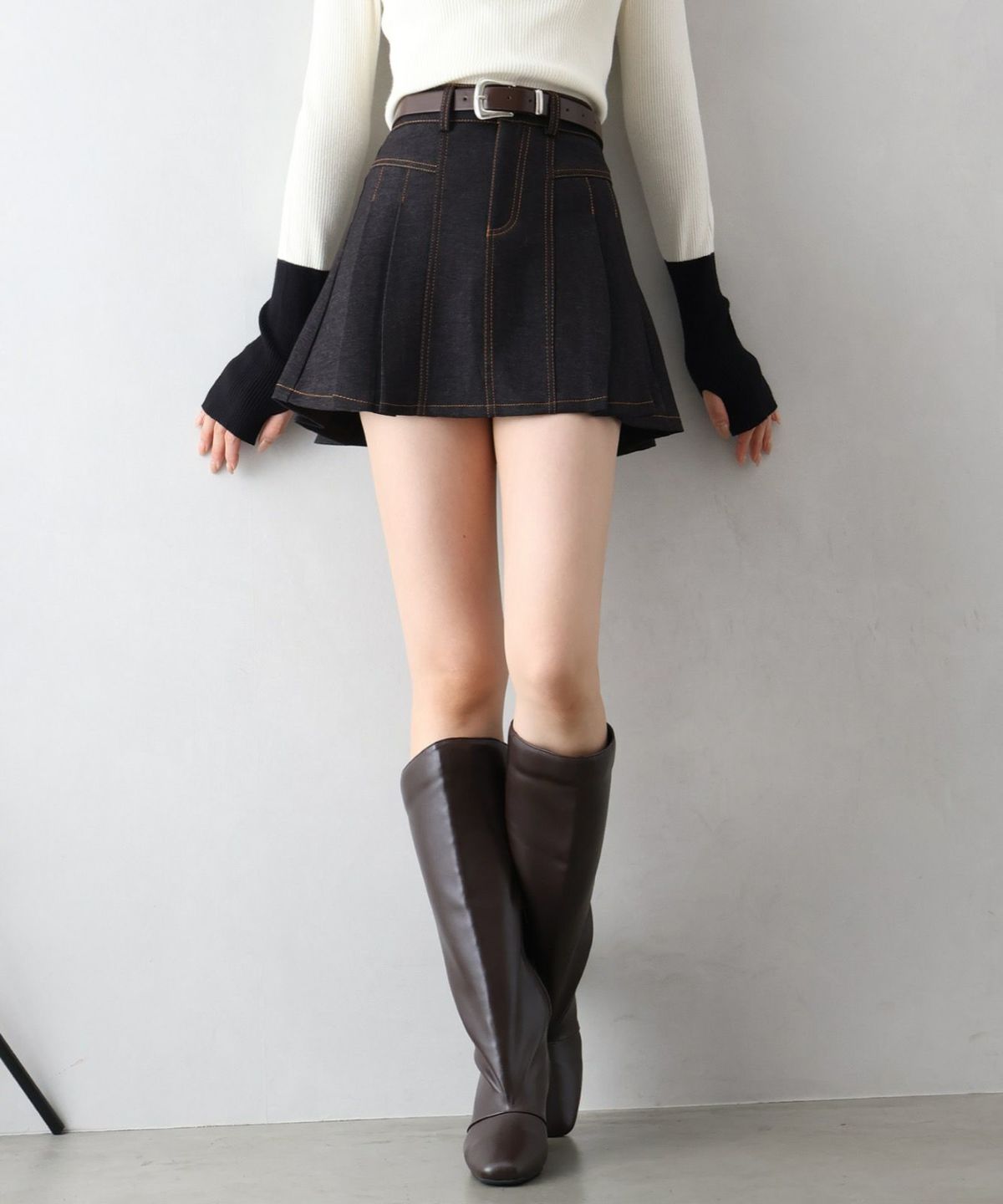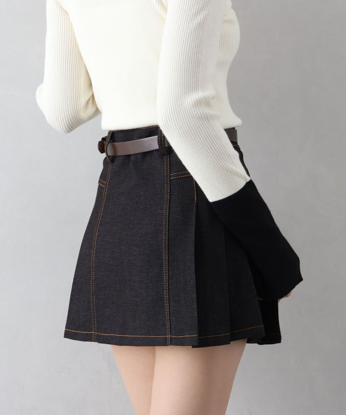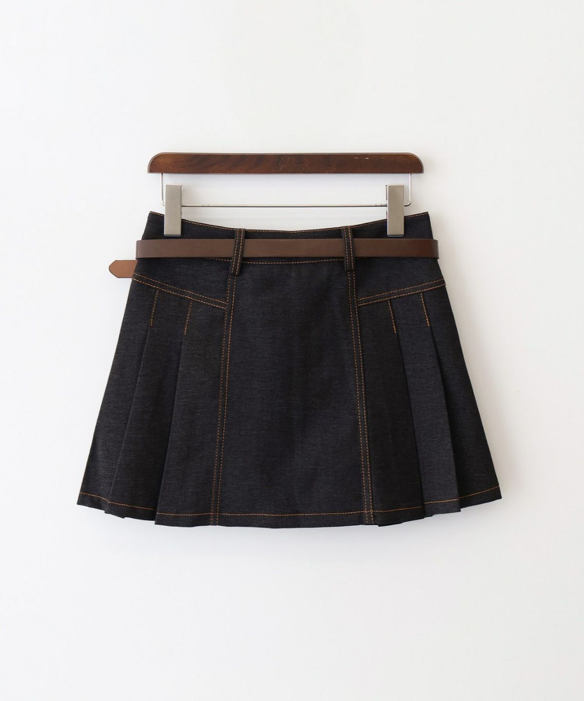 ベルト付きステッチプリーツミニスカート
