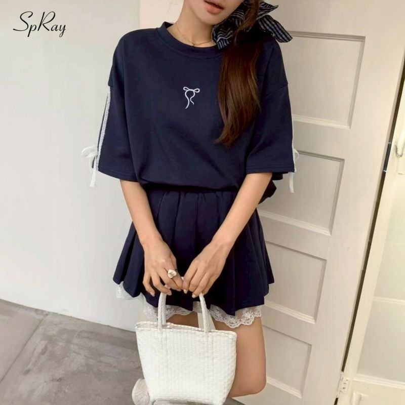 トップス袖口にレースリボン、