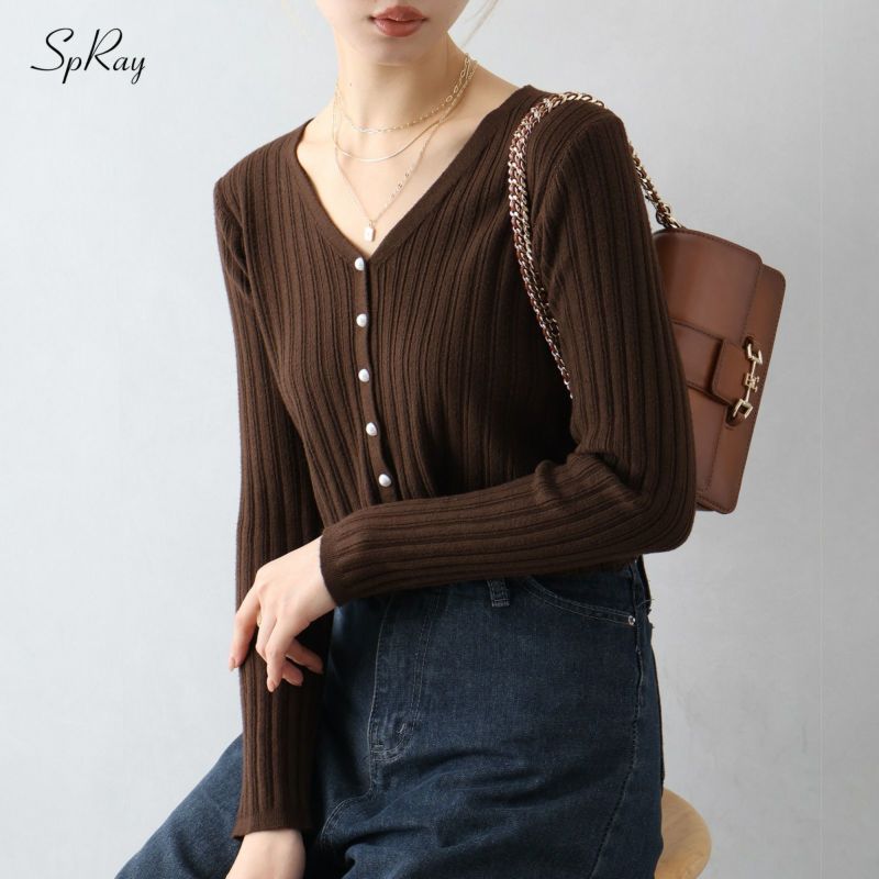 【SpRay パールボタンVネックカーディガン】