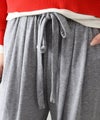 ウエストは総ゴム仕様でラクに履けるのに、落ち感のあるワイドラインが脚をまっすぐキレイに見せてくれるデザイン。