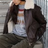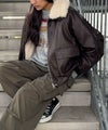 B-3フライトジャケットのデザインをベースにした、ファー衿付きフェイクレザーブルゾンです。