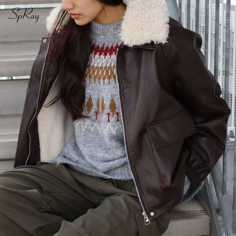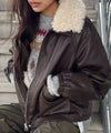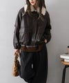 #ファー衿 #レザーブルゾン#フェイクレザー#ボアジャケット #レザージャケット#エコファー#冬アウター#ショート丈アウター#スプレイ#spray