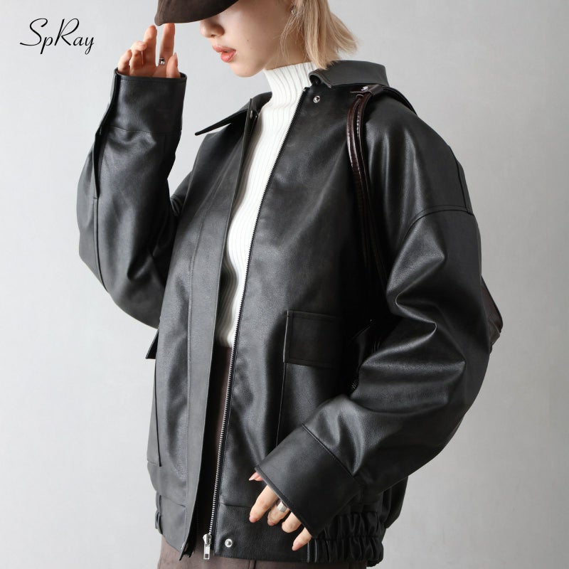 ZIPデザインが映えるレザーBIGブルゾン