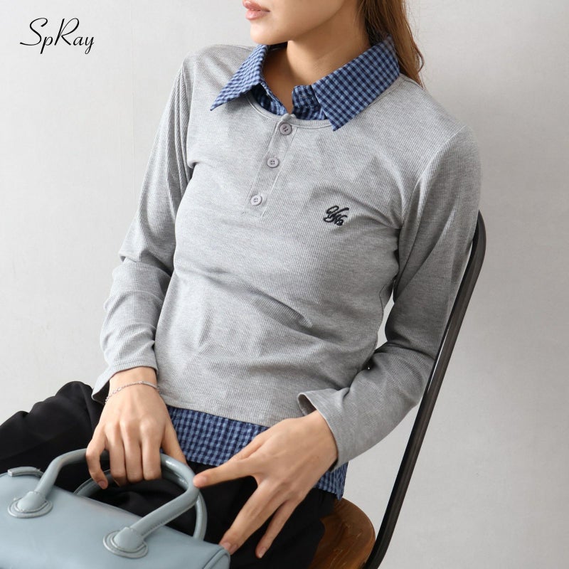 【SpRay テレコxチェックレイヤードスキッパー】
