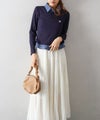 スキッパーデザインで首元に抜け感をプラスし、カジュアルながらも大人っぽく着こなせる一枚です。