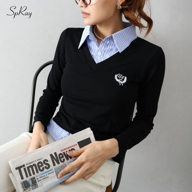 【SpRay テレコxストライプレイヤードプルオーバー】