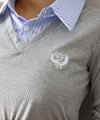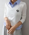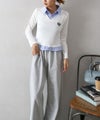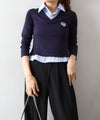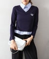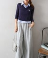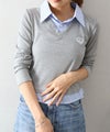 Vネック仕様で首元をすっきり見せつつ、シャツカラーがきちんと感をプラスしてくれます。