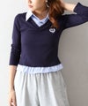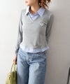 テレコ素材のプルオーバーに、ストライプシャツをレイヤードしたようなデザインが魅力のプルオーバー。