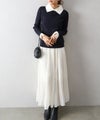細リブ編みで、身体のラインを拾いすぎず、すっきりと細見えするシルエットが特徴です。
