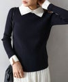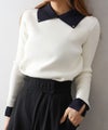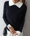 クラシカルで上品な印象の襟付きニットプルオーバーです。