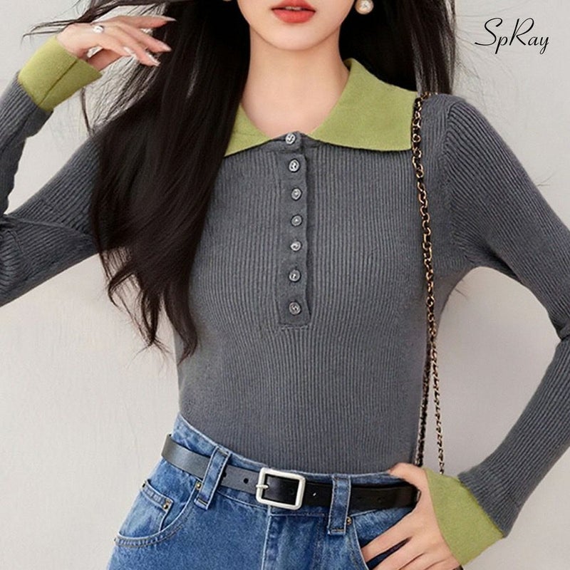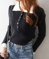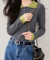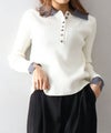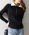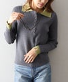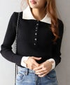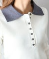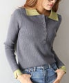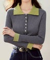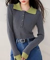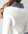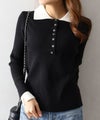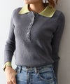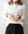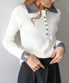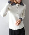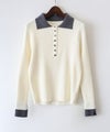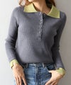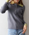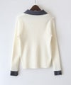 襟元と袖口の配色デザインが目を惹く、トレンド感のあるニットポロトップス。