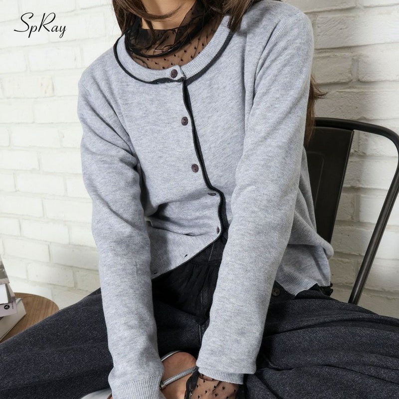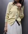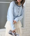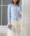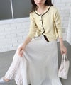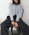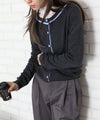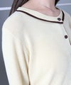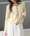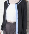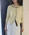 やわらかな配色ラインがさりげなく映える、クルーネックニットカーディガン。