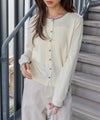 シンプルな中に配色デザインが映える、上品なニットカーディガン。