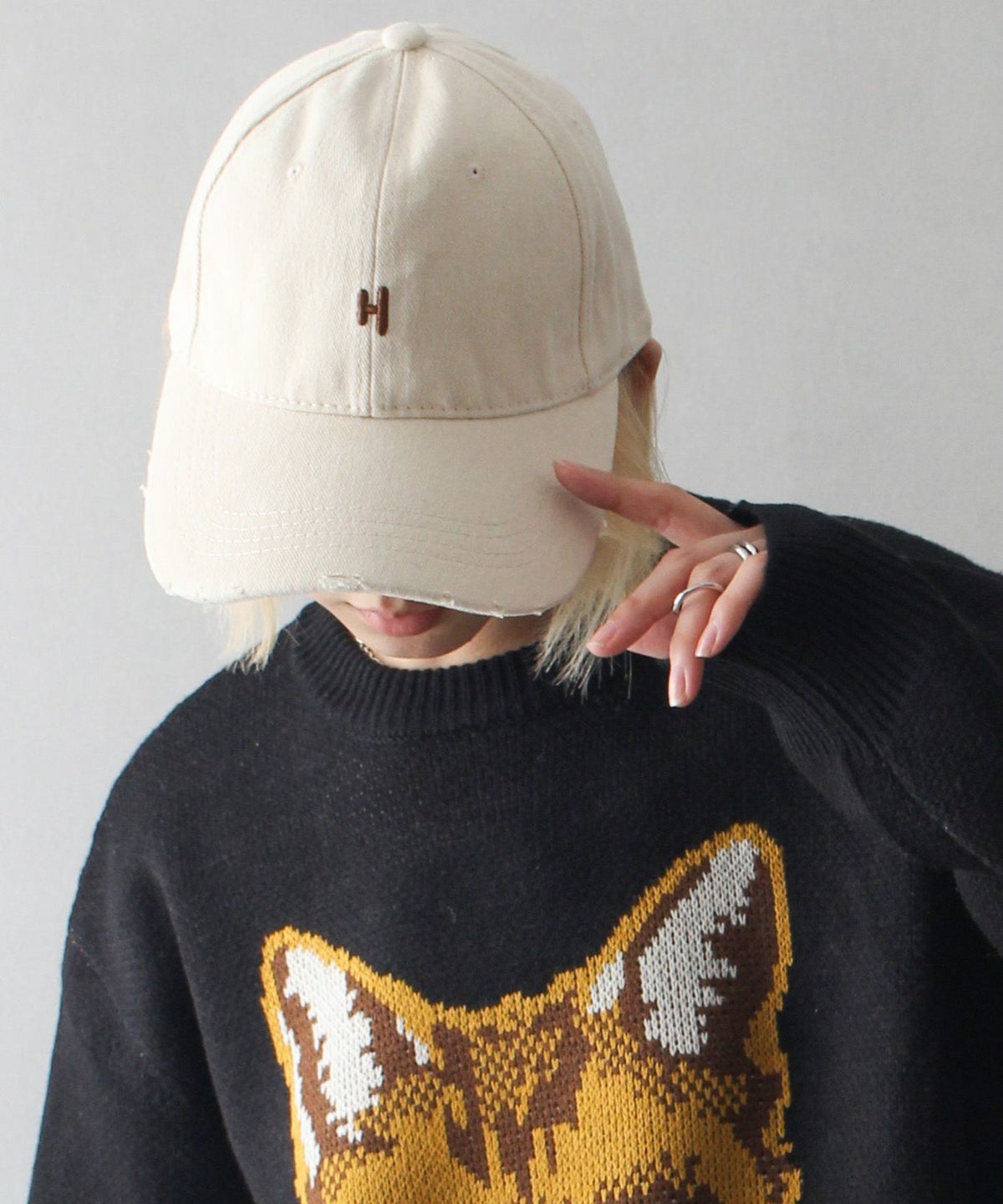 【H】イニシャル刺繍キャップ