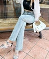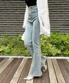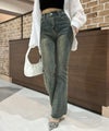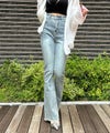 魅力のデニムセミフレアパンツ。