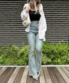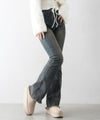 【SpRay すそフリンジストレッチデニムフレアパンツ】
