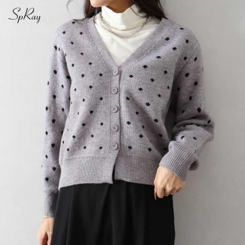 【SpRay ドットVニットカーディガン】