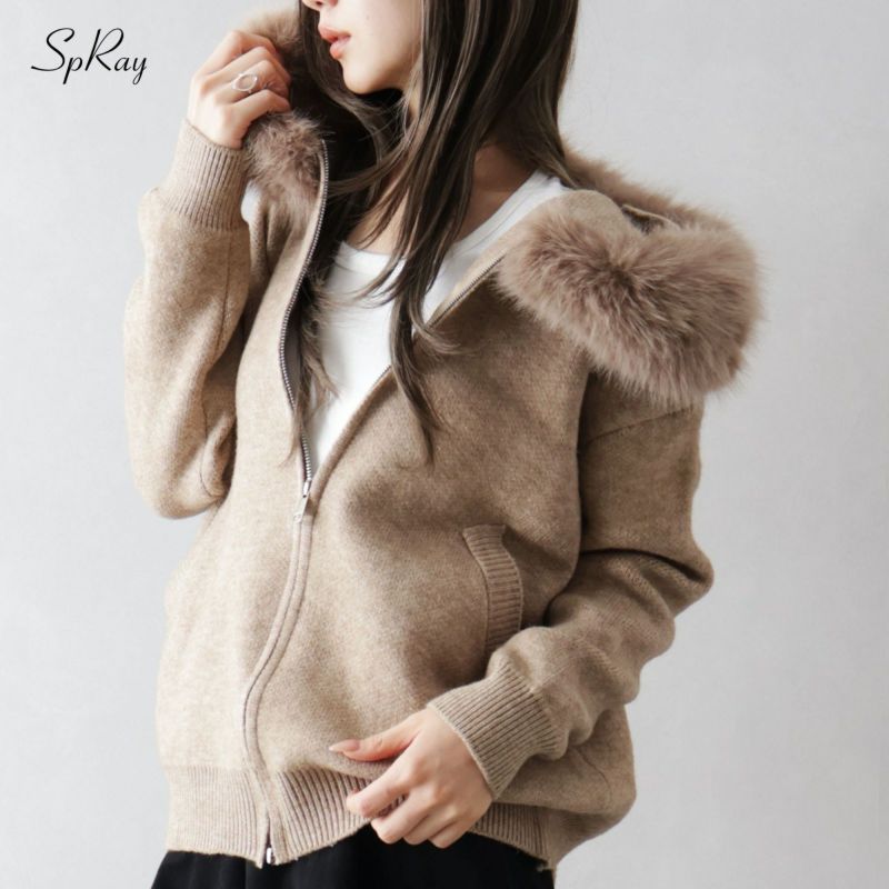 ふわふわのファーフードがシーズンムードを高める、トレンドライクなニットZIPパーカー。