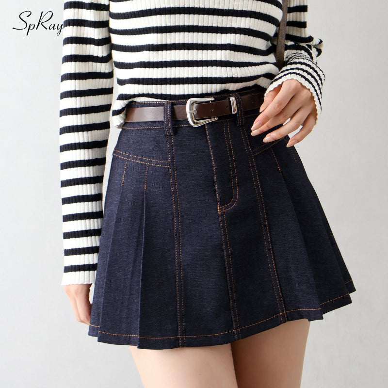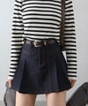 【SpRay  ベルト付きステッチプリーツミニスカート】