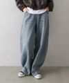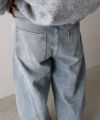 穿くだけで即、旬顔! 差がつくデザインデニムで叶える、大人のモードカジュアル!トレンドのバレル(樽型)シルエットを、カジュアルなヴィンテージライクなデニムで仕上げた主役級の一本。フロントからサイドにかけて大胆に施された切り替えデザインと、タックのような立体的な構造が、他にはないモードな雰囲気を演出します。腰回りのゆとりと、そこから裾に向かうカーブが、気になる太ももや脚のラインを徹底的にカバーし、穿くだけでスタイルアップ!