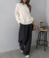 着回しPOINT ざっくりニットやカジュアルなスウェットと合わせて、メリハリのある旬なバランスに。ショートブーツやヒールと合わせれば、シルエットの美しさが際立ち、オフィスにも対応できるきれいめスタイルに。穿くだけでいつものコーデが格上げされる、大人のためのトレンドパンツです。