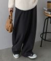 スタイルアップの決定版! 美シルエットを叶える、大人のウールバレルパンツ!今季大注目のバレル(樽型)シルエットを採用した、デザイン性の高いウールパンツ。腰回りはゆったりと、裾に向かって緩やかに細くなる絶妙なカーブを描き、気になる太ももやヒップをさりげなくカバーします。さらに、センターに施された切り替えラインが縦のラインを強調し、脚長効果も抜群です!上質なウール混素材を使用しており、暖かさと上品なハリ感を両立。ウエストは後ろゴム仕様で、きちんと見えながらもストレスフリーな穿き心地を実現しました。
