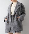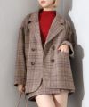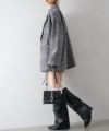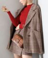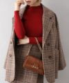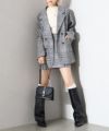 上品なグレンチェック柄が目を惹くミドル丈コート。