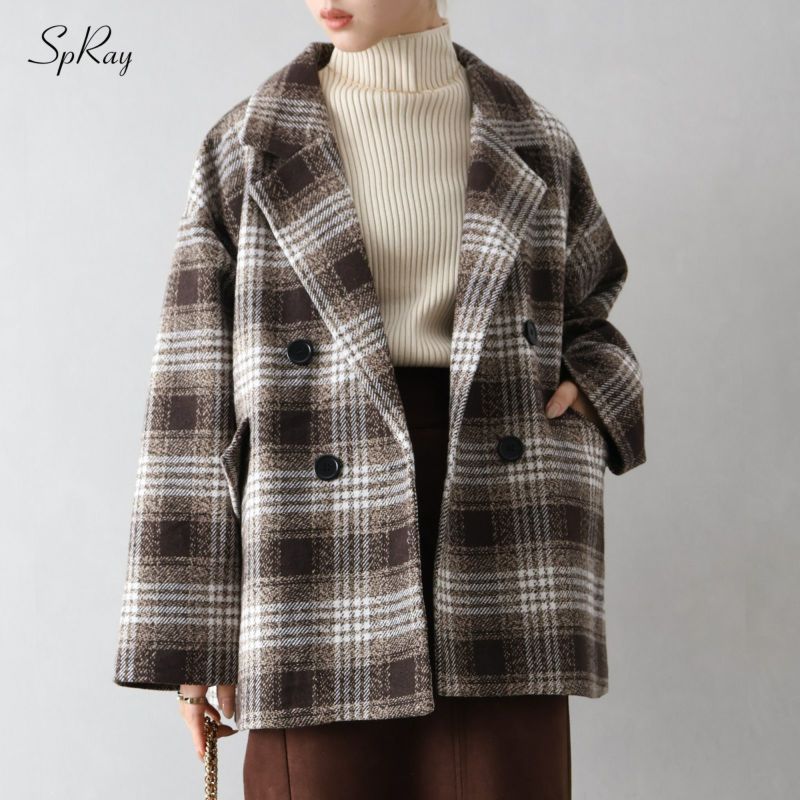 【SpRay フェイクウール チェックBIGジャケット】