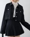 ショート丈ジャケットはツイル素材にステッチを効かせ、