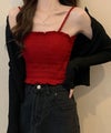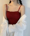 ブラ要らずで美シルエット。1枚で決まるカップ付きシャーリングベア!インナー選びに迷わない、便利なカップ付き仕様。全面に施された柔らかなシャーリングが体に優しくフィットし、ズレ落ちる心配を軽減しました。ブラ紐の露出を気にせず、オフショルやシアートップスもスマートに着こなせます。リラックスしたい日のデイリー使いから、お出かけのインナーまで手放せなくなる1枚です。くしゅくしゅとしたシャーリング素材が、単調になりがちなコーディネートのアクセントに。Vネックのカーディガンやシャツの胸元から覗かせるだけで、奥行きのある着こなしが完成します。カラーバリエーションも豊富なので、その日の気分に合わせて「差し色」として楽しむのもおすすめです。