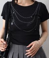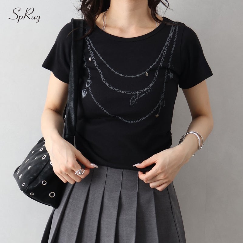 【SpRay スタッズネックレスプリントTシャツ】