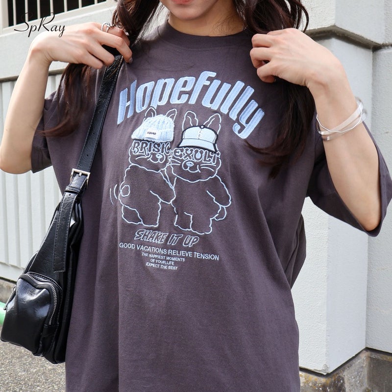 【SpRay うさぎ刺繍Tシャツ】