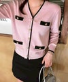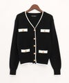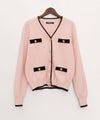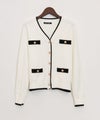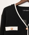 1枚で主役級!配色ラインとゴールドボタンのコンビネーションが、クラシックで上品な印象を与えてくれる1着。Vネックのデザインが顔回りをすっきりと見せ、ブラウスを重ねても1枚でプルオーバーとして着てもサマになります。いつものボトムスに合わせるだけで、ワンランク上の装いが完成します。