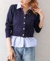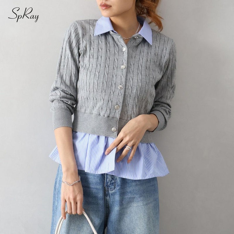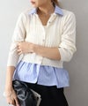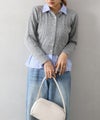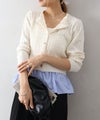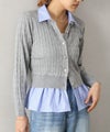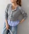 ケーブル編みニットとシャツデザインをドッキングした、1枚でレイヤードスタイルが完成するカーディガン。
