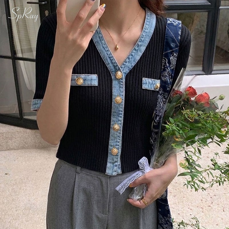 【SpRay デニム切替ショートスリーブカーディガン】