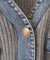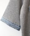 リブニットにデニムの切り替えデザインを施した、異素材ミックスが目を引く主役級カーディガン。ネックラインからフロント、ポケット口、袖口にデニムを配置することで、クラシカルなカーディガンにカジュアルでエッジの効いたアクセントをプラスしました。