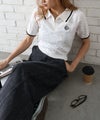 胸元のワンポイント刺繍がさりげないアクセントになり、シンプルながらもこなれた印象に。