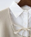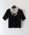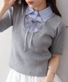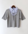 シャツをレイヤードしたようなデザインが1枚で完成する、ドッキング;ニットトップスです。