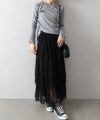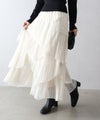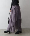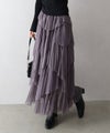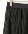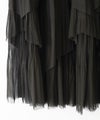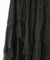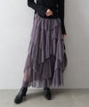 繊細なチュール素材にプリーツ加工を施し、フリル×アシンメトリーデザインで立体感をプラスしたロングスカート。