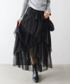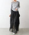 【SpRay チュールプリーツフリルアシメロングスカート】