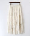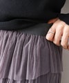 段違いに重ねたフリルとプリーツが動きを生み、シンプルなトップス合わせでもコーデが決まる一枚。