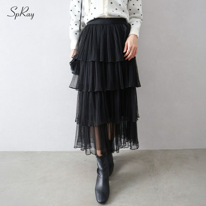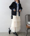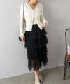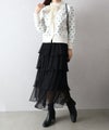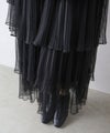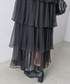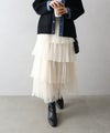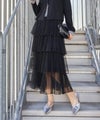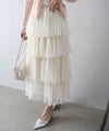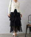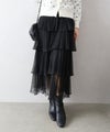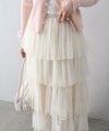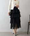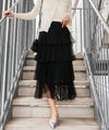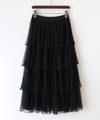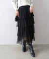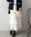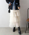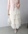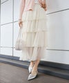 繊細なチュール素材を重ねた、華やかなティアードロングスカート。