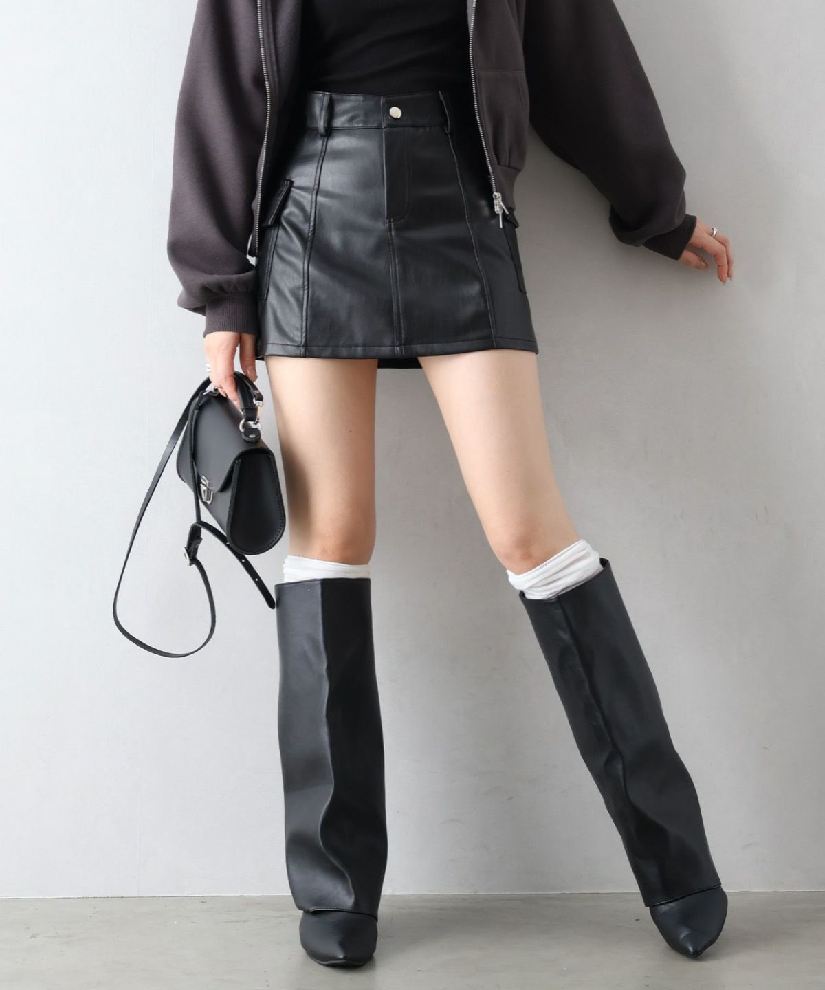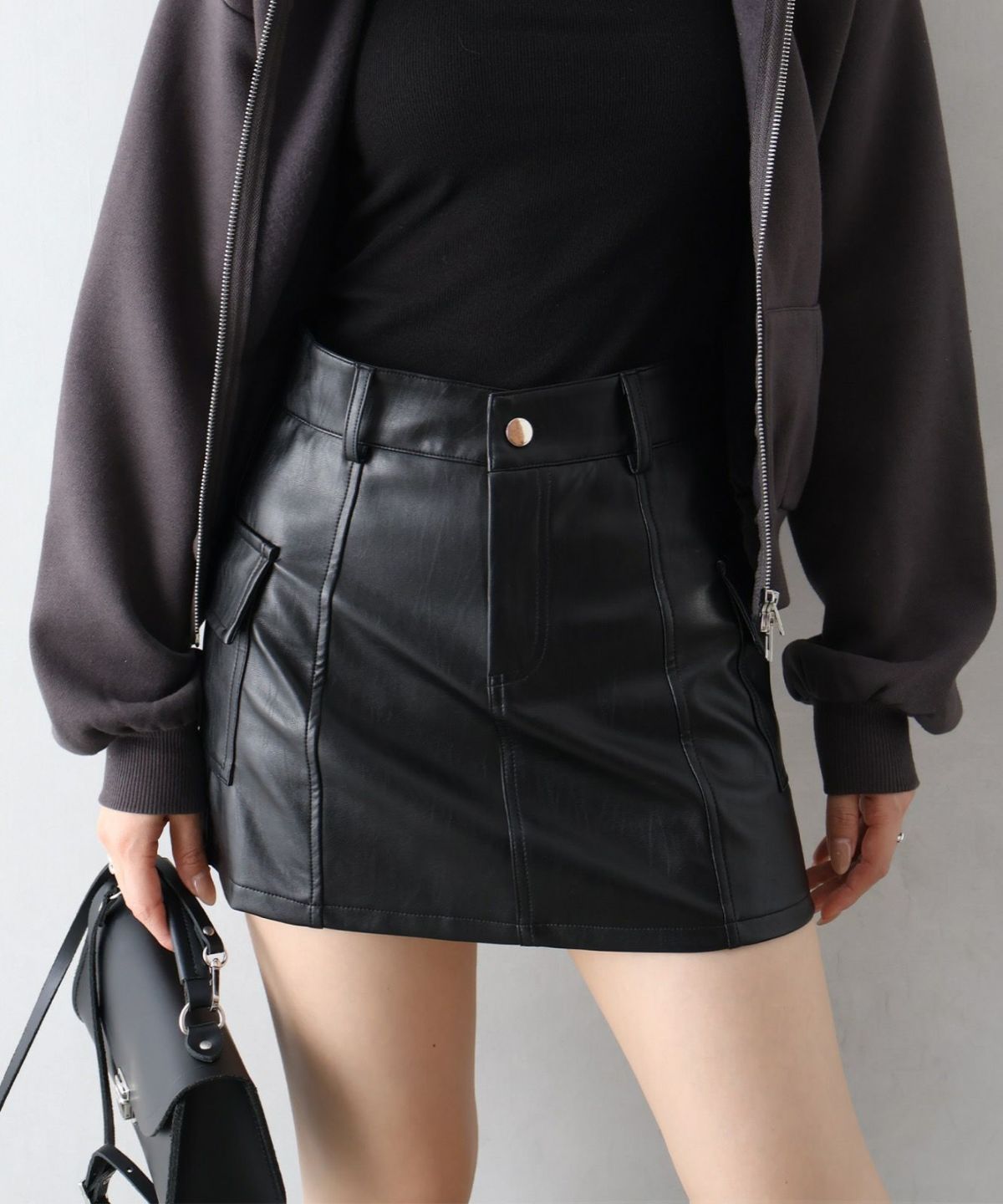 フェイクレザーカーゴミニスカート