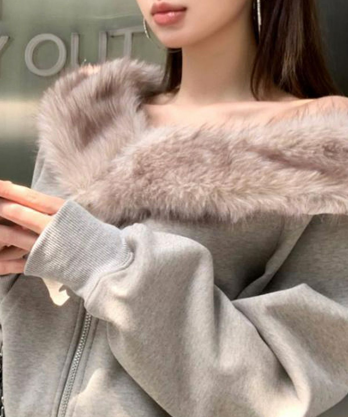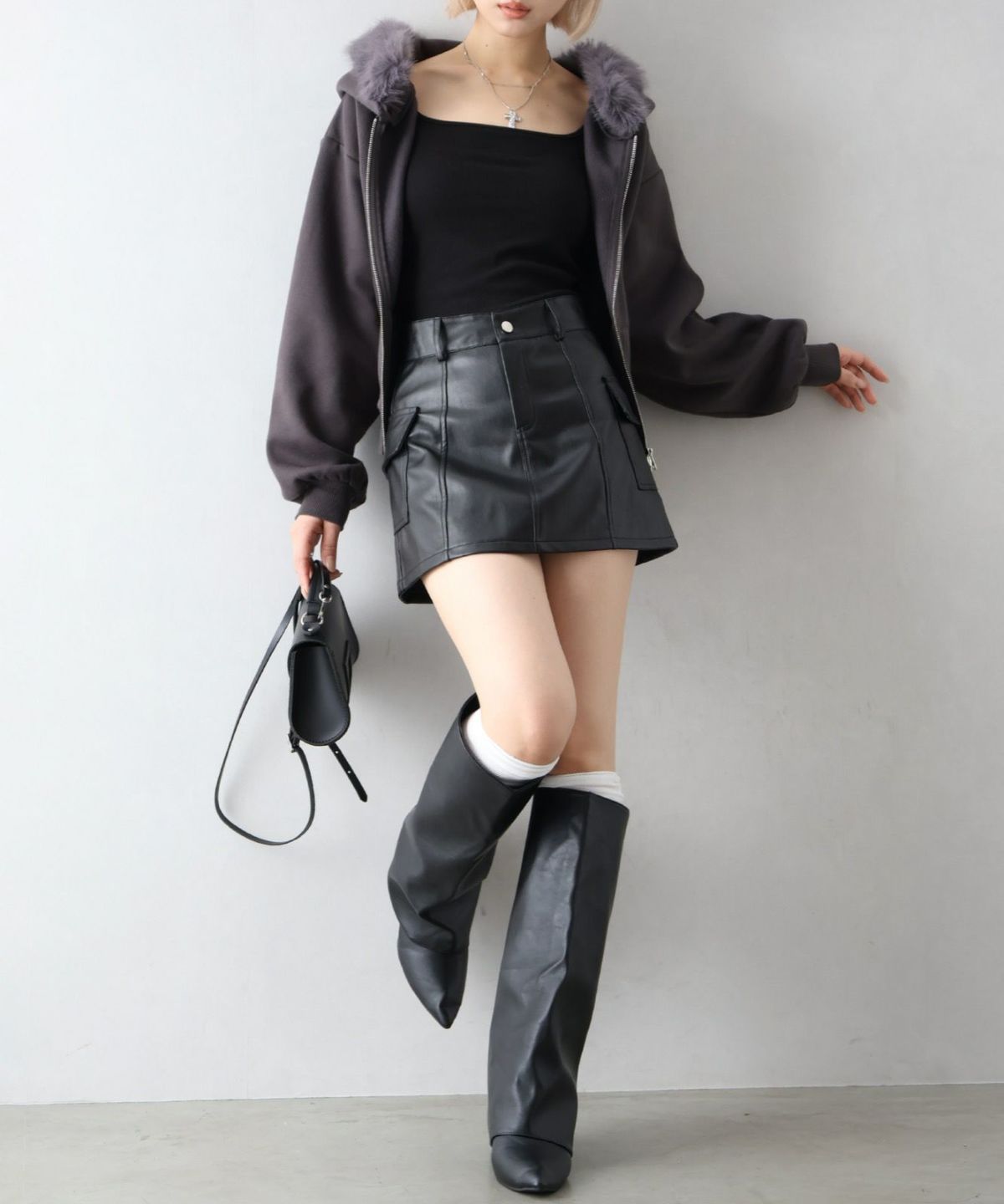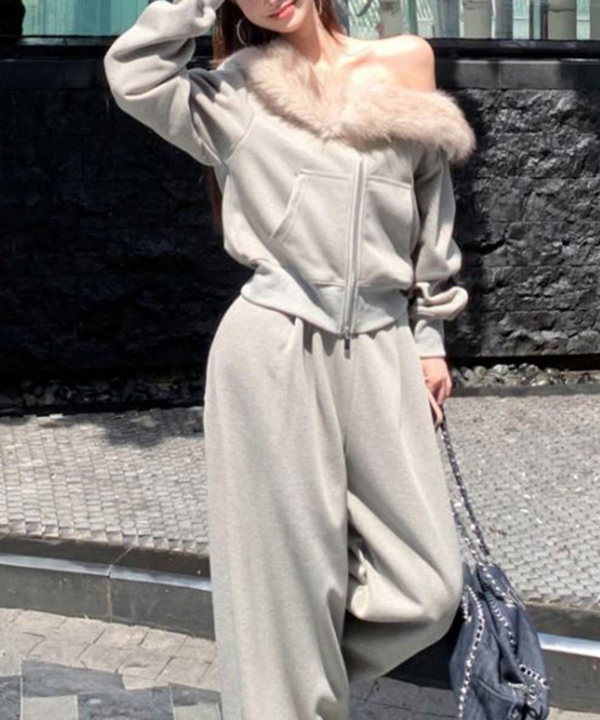 ファー付きZIPカーディガンSET UP