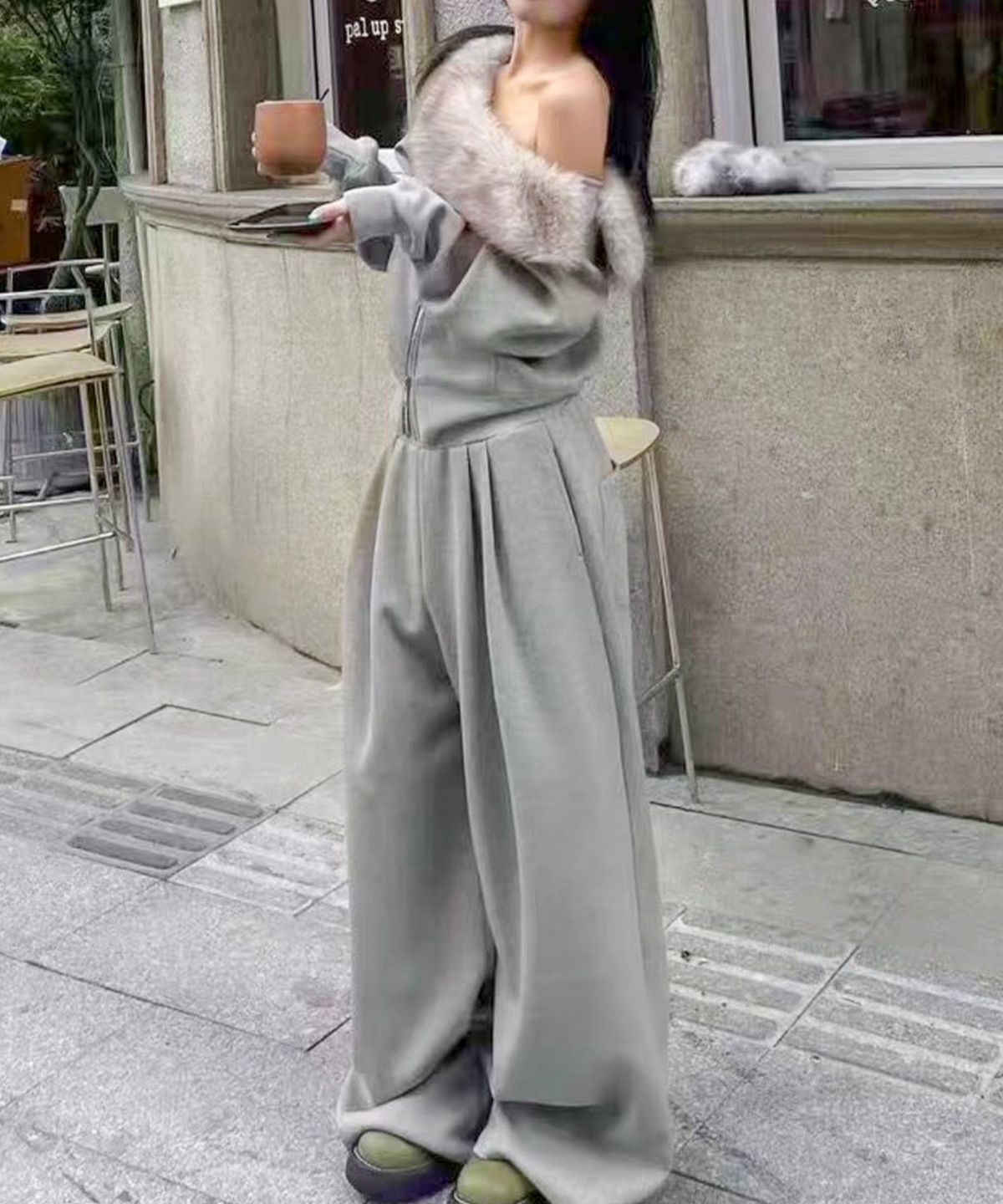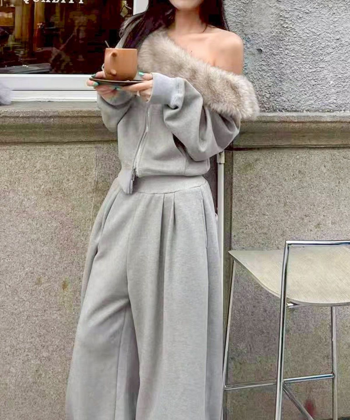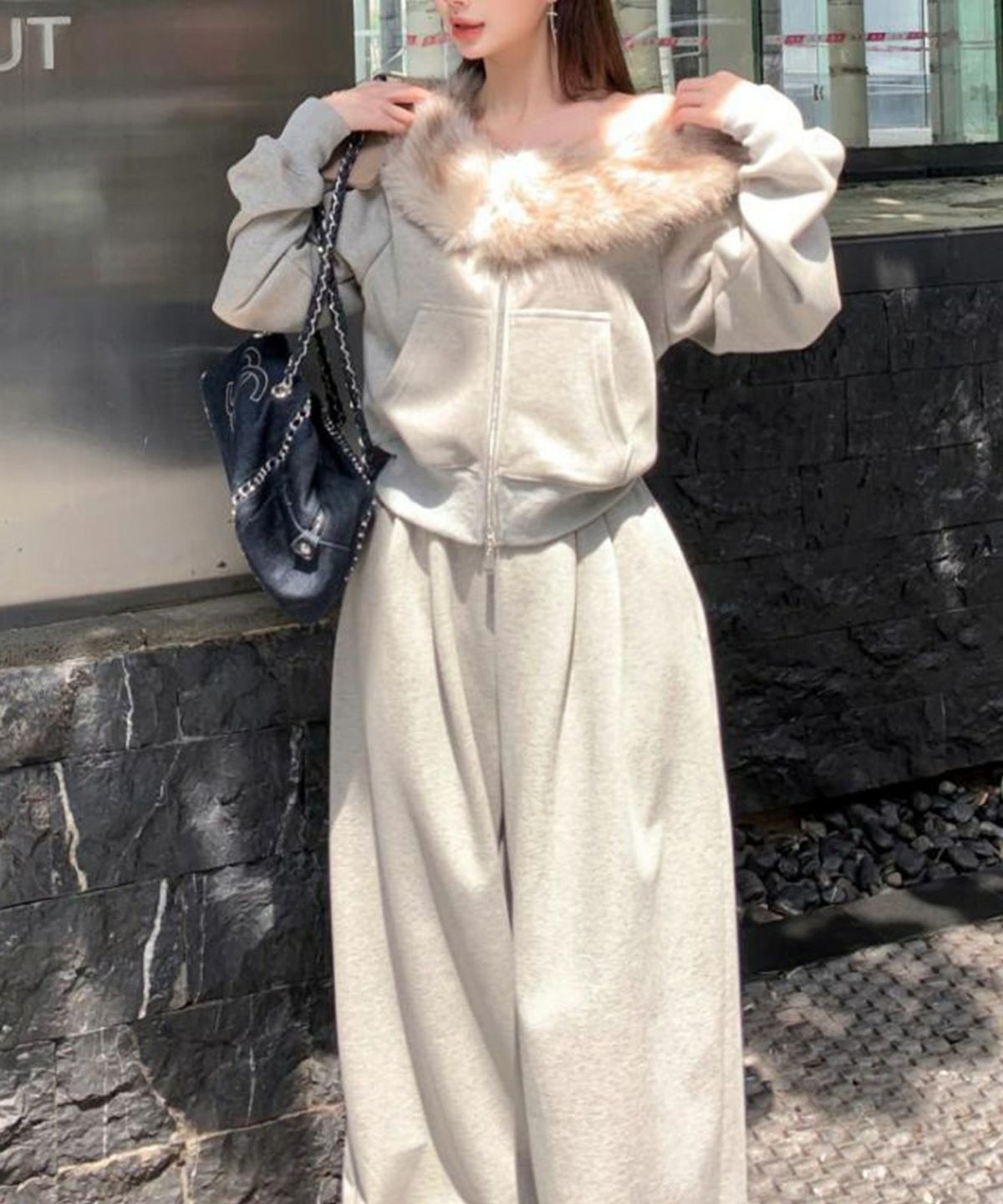 ファー付きZIPカーディガンSET UP
