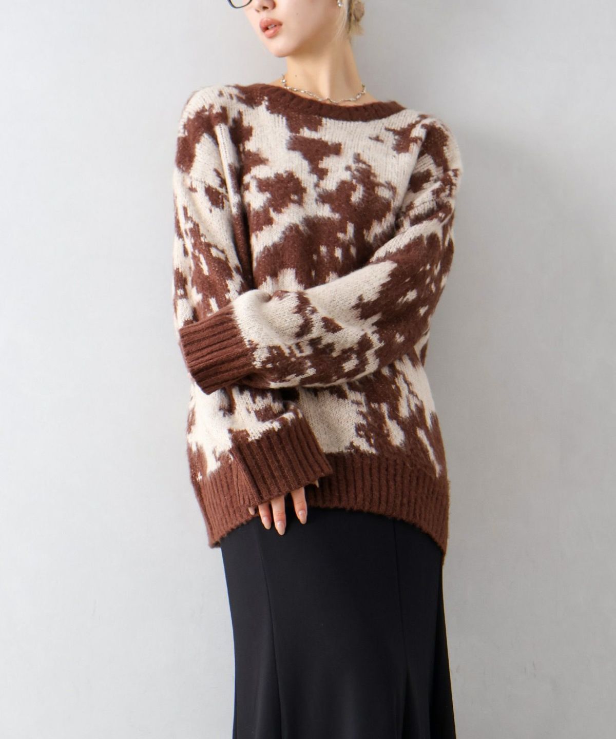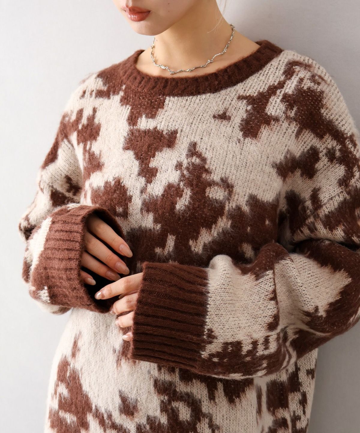 起毛ニュアンス柄プルオーバーニット