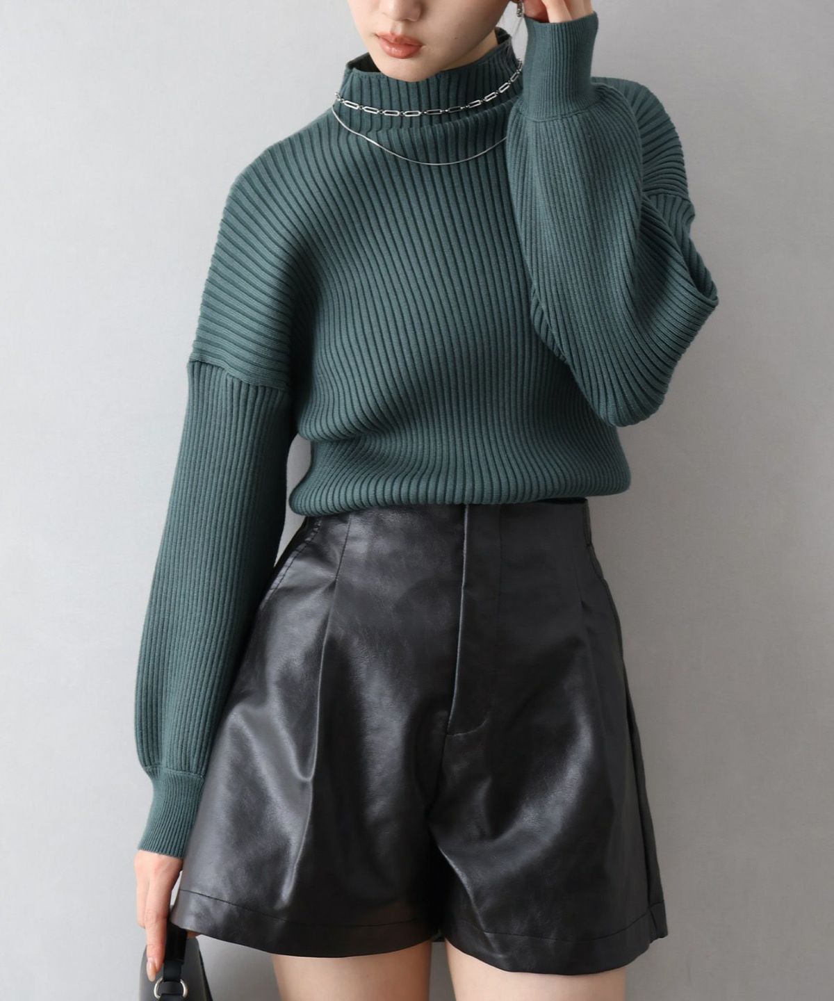 ボリューム袖ボトルネックニット